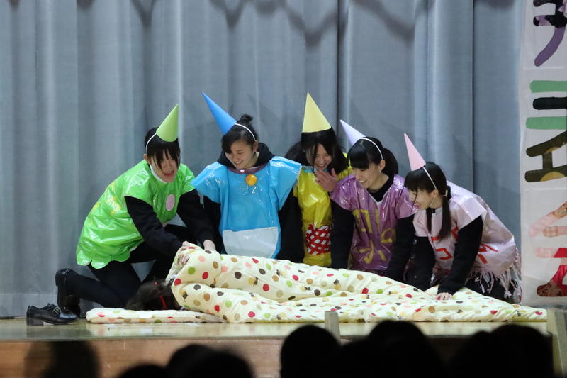 家政科3年保育コースの10名によるステージ発表は,劇「白雪姫」。