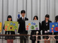 今年度で御退任される若山美和子先生と常盤仁主任技師の退任式が始めに行われ,そのあと,御転任される小山英明教頭先生をはじめ,澁谷理子先生,渡辺万利子主任主査,成田流音主事,青木梨恵先生,今野健先生の離任式が行われました。新聞等で御栄転を知った卒業生も駆けつけてくれました。