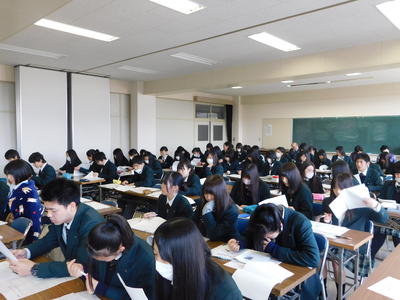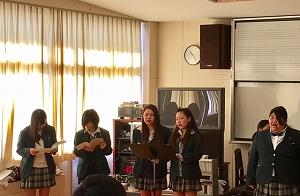 1月29日に3年生の音楽を選択している生徒たちが,音楽発表会を行いました。 この日は,音楽を選択している3年生にとって最後の授業。松山高校でのたくさんの思い出を描きながら,「卒業」「旅立ち」をイメージした楽曲を合唱しました。感極まって,涙がこぼれた生徒もいました。