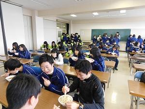 そして,最後は全校親睦会。全校生徒で豚汁を食べ,楽しい時間を過ごしました。 さて,この企画は,新生徒会が中心となり,先輩たちと楽しい思い出を作るため,スライドショーや運動会の準備から150食以上もの豚汁の仕込みまで,タイトな日程の中準備を進めてきました。新生徒会も,いよいよ本格的に始動しました。より良い学校を目指して頑張っている姿が頼もしいですね!