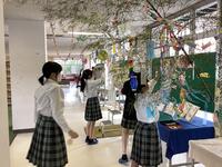 飾りの製作は図書委員だけでなく、「私も作りたい!」とたくさん作ってきてくれた生徒もいました。また、3年家政科の生徒もかわいい吹き流しを作ってくれて、とても華やかな七夕になりました。