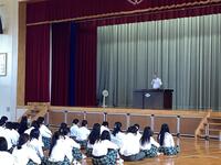 集会に先立ち、能登半島地震の犠牲になられた方々へ黙祷を捧げました。校長先生から、東日本大震災での経験を踏まえて「もう一度、身のまわりで大きな地震が起きたときのことを考え家族で話し合い、備蓄品や連絡方法等を確認して欲しい」「行政の体制が整ったら、その時が私たちが支援をできる時。被災者のために何ができるのか、みんなで考えて行きましょう」と、お話がありました。