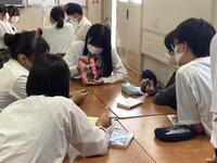 11月17日(金)家政科講演会を行いました。今年はマナコフラワーアカデミーの一條康子先生を招き「フラワーアレンジメントについて」講演していただきました。内容は,デモンストレーション→作品紹介→体験の順に行いました。最初に生花でアレンジメントのデモンストレーションを菊地めぐみ先生と一緒にしていただきました。基礎基本についても丁寧に教えて頂きながら、応用として砥草を使い斬新なアレンジメントを行いました。次に一條先生が手がけたブーケやアレンジメントを一つ一つ紹介していただきました。最後に生徒たちが1人ずつ「ミニフラワーケーキアレンジメント」の製作を行いました。同じ材料でアレンジしていますが,色が少し違うことや配置によって表情が変わることが面白く生徒達は夢中になって取り組みました。それぞれ自分の作品が出来て嬉しそうでした。