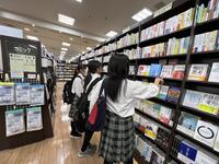 はじめに、書店についての紹介や本の流通についてのお話を伺いました。その後、店内で学校図書館に購入を希望する本を選びました。生徒は悩みながら、様々なジャンルの本を選んでいました。