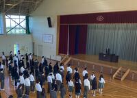 校長先生から、この夏は暑さが様々な活動を妨げた。自然災害に見舞われた地域もあった。ここに、みんなで集まれたことに感謝したい。また、物事を前向きにとらえ「自分はやれる」と信じてそれぞれの目標に向かって有意義な日々を過ごしましょう。と、お話がありました。生徒は、しっかりと先生の言葉に耳を傾けていました。