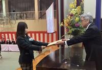 校長先生の式辞では、はじめに「朝の読書大賞」優秀校受賞について「読書は居ながらにして旅に出られるもの。生涯続けてほしい。」とお話しがありました。