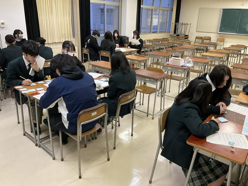12月4日(木)には第1回生徒会研修会を行い、ブレインストーミングを通して1人1人が活動目標を立て、今後の行事に向けた役割分担を行いました。