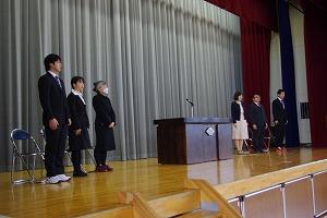 4月9日,体育館で新しく赴任された先生方の新任式と始業式を行いました。 始業式では,2・3年生に向けて,徳能校長先生から「一日一日を大切に過ごしましょう」というメッセージをいただきました。