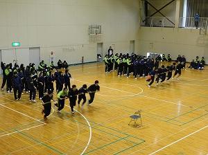 その後,全校を4つのチームに分けてのミニ運動会が!「台風の目リレー」や「しっぽ取り」など3つの競技で大いに盛り上がりました。