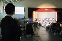 生徒のご家族でしょうか。会場にいた小さな子どもたちは,投影された紙芝居に目が釘付けでした。