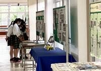 【図書館】2・3年生NIEタイム ~図書館前で作品を展示中~