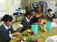 3年被服コースで,一條康子先生を講師に招き2日間ブーケ講習会を行いました。生徒たちは,授業で自分のデザインしたドレスの製作を行い,学校内外でファッションショーを行う予定です。その時に持つブーケの製作を行いました。自らドレスに合う造花を持参し,1輪ずつワイヤリングやテーピングを行いました。それを上手く組み合わせてラウンド型やキャスケードの形に整えて完成させました。実際に11月10日(日)に行われた『さんフェアみやぎ2019』のファッションショーでブーケを持ち華やかにショーを行いました。                10月2日(水)16(水)