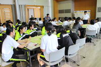 9月13日(木)就職・進学試験前に学年全体で志気を高めるため,出陣式を行いました。校長先生から激励のことばをいただき,進路委員長の伊藤香さんが受験生代表として決意表明を行いました。3年生の皆さんには,ぜひ全力を尽くして頑張ってほしいものです。