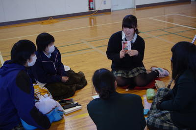 体験後はグループに分かれ,「歩いているときどういう危険があったか」「歩いていてどこが一番怖かったか」「視覚しょう者の方々に出会ったら何をしてあげられるか」等を活発に議論し,グループごとに発表しました。