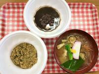1月14日(金)は「ほっこりカフェ」の日。今日の“ほっこり“ではお餅をいただきました。米どころ宮城では,お正月だけでなく,「ハレの日」には餅をふるまいます。種類もたくさんあって,地域によってめずらしい餅料理があります。今日のラインナップは,宮城県北の郷土料理「ふすべ餅」,おだしのきいた「お雑煮」,小豆をことこと煮込んでつくった「あんこ餅」。