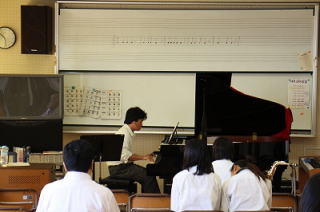 3年生の選択教科で音楽を学んでいる生徒たちの発表会が行われました。この日は,歌,ピアノ,サクソフォン,三味線,ギター,リコーダーなど…得意な楽器や,初めての楽器に挑戦 しての演奏など,これまで練習してきた成果を発表しました。