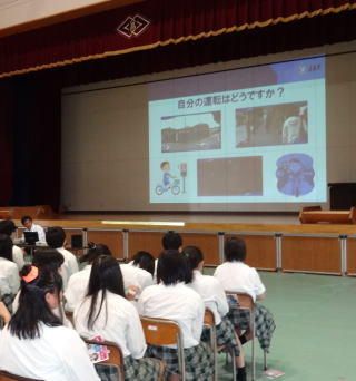 9月15日(金),本校体育館にて交通安全講話が行なわれました。JAF宮城支部の渋谷様より,「危機予知による交通安全」をテーマに御講話いただき,自転車の危険運転や事故事例を映像でわかりやすく説明いただきました。