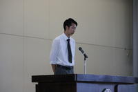 校長先生からは,人との出会いがみんなを成長させるという講話がありました。また,生徒会長が登壇し,8月1日に山形県立小国高等学校で行われた『第1回小規模校サミット』に参加し,全国の高校の生徒と交流を深められたことが,大変貴重な体験となったとの報告がありました。
