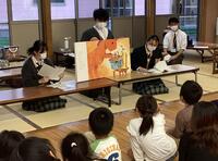 9月29日(木)松山放課後児童クラブで、図書委員による「おはなし会」を開きました。今日は6人の図書委員と有志の生徒が読み聞かせを行いました。