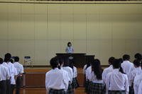 校長先生からは,人との出会いがみんなを成長させるという講話がありました。また,生徒会長が登壇し,8月1日に山形県立小国高等学校で行われた『第1回小規模校サミット』に参加し,全国の高校の生徒と交流を深められたことが,大変貴重な体験となったとの報告がありました。