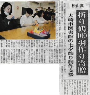本校生徒が「七夕飾りをつくろうプロジェクト」に参加しました。大崎市図書館に,見事な七夕飾りが飾られています。
