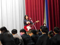 10月19日(金)松高祭(校内発表)と合わせて,松山公民館にて芸術鑑賞が行われました。今年度は,(株)劇団影法師による大型人形劇「三国志」を鑑賞しました。「三国志」の事前学習を授業で行ったことや人形の迫力により,生徒・教職員ともに有意義な鑑賞となりました。劇終了後には,人形の操作を実際に生徒が体験するなどワークショップも行われました。