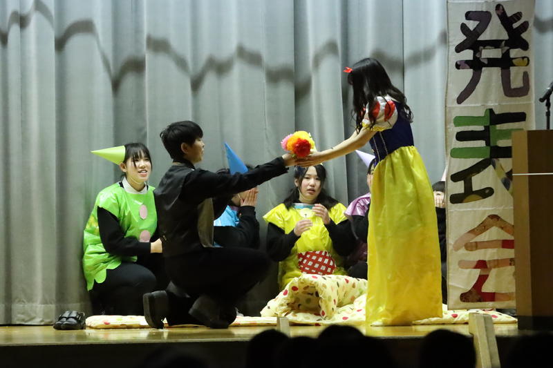家政科3年保育コースの10名によるステージ発表は,劇「白雪姫」。