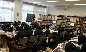 8:40のチャイムを合図に,毎朝10分間,生徒も先生もみんな一斉に,読書タイムです。