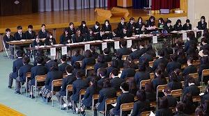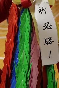 各部の部長から決意表明が述べられたあと,全校生徒が心を込めて折った必勝祈願の折鶴が各部へ手渡されました。