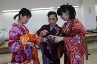 10月2日(火)家政科2年生の被服コースで,浴衣の着付け講習を行いました。ただいま被服コースでは,生徒が浴衣製作中です。慣れない針運びに苦労しながらも,ひと針ひと針心を込めて縫っています。