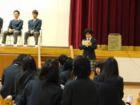 10月5日(金)に生徒会立会演説会及び役員選挙が行われました。新生徒会長には,2年野呂昂史くん,副会長に2年佐々木竜也くん,1年遠藤聖矢くんが決まりました。先輩方の意志を受け継ぎ,よりよい学校になるように頑張ってほしいものです。