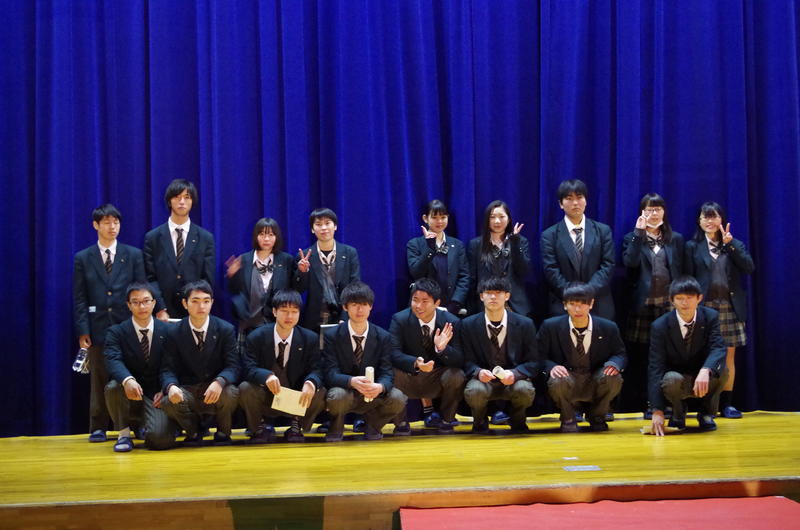 さて,この大きな行事を陰で支えてくれたのが,普通科3年生の生徒たちです。18人の生徒たちが協力して,オープニング映像や歓迎門の製作,当日の企画・運営等で,本当によく頑張ってくれました。