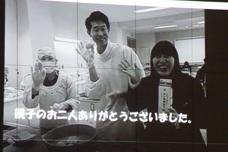 生徒のご家族でしょうか。会場にいた小さな子どもたちは,投影された紙芝居に目が釘付けでした。