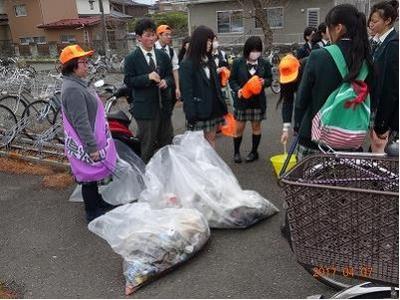 4月7日(金)来週から新学期を迎えるに当たり本校生徒会執行部20名が,学校から JR 松山駅町までの通学路の清掃活動を行ないました。