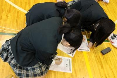 はじめに「学校にいるときに大きな地震が地震が発生したら」を想定し,校地内で「一番危険」と思う場所,「一番安全」と思う場所を,自分の足で探しました。