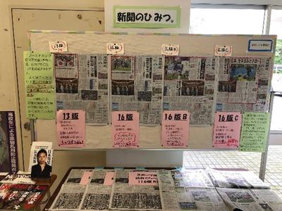 7月3日(火)より,図書館前の廊下で「新聞のひみつ展」を行っています。掲示しているのは「ワールドカップロシア大会」の予選リーグで,セネガルとの試合結果を報じる新聞です。4紙ともすべて,6月25日付けの『河北新報』朝刊の1面です。同じ日の新聞なのに,記事の内容と写真が異なっています。