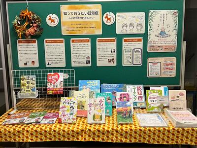 図書館前で認知症についての展示が始まりました。認知症に関する情報や認知症の方との接し方,関わり方などを紹介しています。また、認知症に関する図書やパンフレットも展示中です。