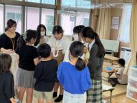 図書委員の新しい活動が始まりました。7月から12月までの毎月1回、松山放課後児童クラブで「おはなし会」を開きます。今日は、その第1回目。今日は4人の図書委員が読み聞かせを行いました。