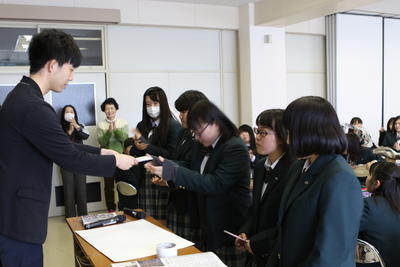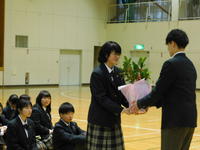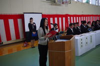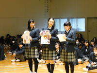 全校生徒の前で発表するのはかなり緊張するようで、教室内での日頃の態度とは違い,かなり神妙な様子で、