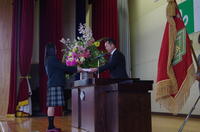 4月8日 入学式が行われ,普通科23名,家政科37名の入学が許可されました。父母教師会会長の佐々木様からは,「夢や希望に向かって全力で取り組んでほしい」とお話がありました。同窓会会長の早坂様からは,入学記念として校章のバッジをいただきました。校長先生からは「目には見えない成長」「他の人たちとの心の共有」そして「あきらめない心」と,大切にしてほしい3つのことについてお話がありました。