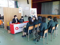 11月8日(金)合同企業説明会in松高が本校体育館で行われ、11社が参加しました。1・2年生の生徒に向けて企業が説明会を行い、希望する3社の説明を聞き、自分の進路について考える機会となりました。また、企業で活躍する本校卒業生3名も参加し、いきいきとした姿は後輩にとって良い刺激となりました。1年生は来年度のインターンシップ、2年生は就職活動の参考として、夢に向かって頑張って欲しいと思っています。
