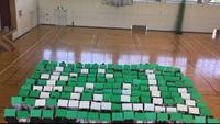9月19日(木)6校時,全校生徒で人文字撮影を行いました。本日松山高校は,開校40周年を迎えました。記念イベントの一つとして,「松山」「校章」「40」を人文字で作成しました!最初はパネルの位置やタイミングなどが合わず,文字として認識できるようになるまでに時間がかかりましたが,繰り返しの練習を経て,最終的には素敵な人文字を作ることができました!