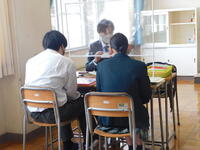 進学希望者は大学・短大5校,専門学校8校から担当者が来校し,希望する学校3校の説明を聞きました。就職希望者は就職講演,自己分析,志望理由の考え方,公務員希望者は公務員試験対策の問題演習などを外部講師の方から講話をしていただきました。
